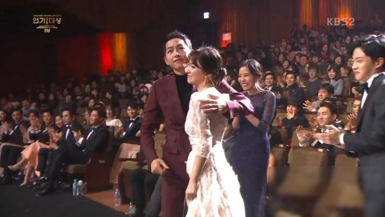 2016年KBS演技大賞最重要大獎(jiǎng)由《太陽的后裔》宋仲基和宋慧喬獲得,兩人一上臺(tái)皆難掩激動(dòng)情緒,忍不住哽咽。宋慧喬對(duì)于獲得“最佳CP獎(jiǎng)”發(fā)表感言,“和喜歡的人一起領(lǐng)獎(jiǎng),真的很開心”,在主持人全炫茂的詢問之下,滔滔不絕地稱贊宋仲基就和劇中的劉時(shí)鎮(zhèn)一樣,“幽默、聰明、真誠又溫柔”,宋仲基則回贊對(duì)方,“真的非常美麗又大方”,他們更現(xiàn)場(chǎng)重現(xiàn)了“什么血型”的撒嬌,彼此溺愛的眼神超吸睛。