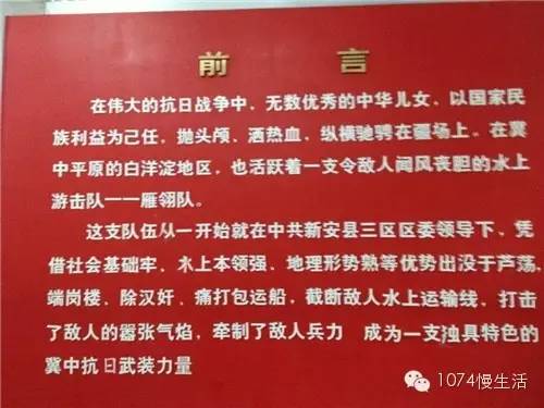 雁翎隊(duì)打日寇、鋤漢奸、端崗樓,打伏擊,功績卓著,被冀中軍區(qū)評(píng)為抗日先進(jìn)集體。他們使用過的排子船、大抬桿陳列在中國人民軍事博物館。