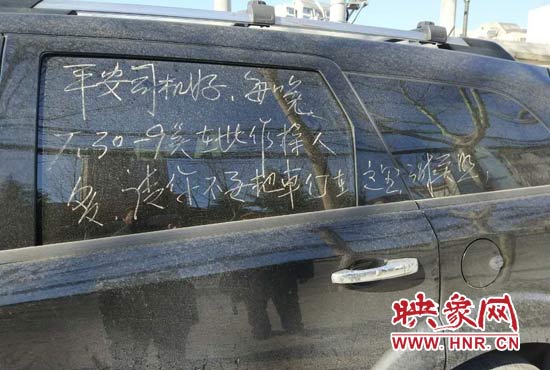 映象網(wǎng)快訊(記者 邱延波 文/圖)眾所周知,在全國(guó)各地,大爺大媽們對(duì)廣場(chǎng)舞的熱愛(ài),幾乎是風(fēng)雨無(wú)阻,雷打不動(dòng)。鄭州市一車輛停在路邊,影響了大爺大媽們跳廣場(chǎng)舞,是可忍孰不可忍,他們?cè)谲嚿蠈懴拢⑼海?,提醒車主早點(diǎn)把車開走。