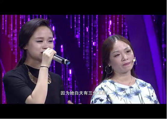原來在父親去世多年后,母親再婚又組成了新的家庭,而再婚一事遭到了陳歡強(qiáng)烈的反對,母女間因此產(chǎn)生了心結(jié)。在舞臺上,陳歡說其實(shí)自己一直以來反對的原因是害怕母親再婚后會忽略她,讓已經(jīng)失去父親的她又失去母愛。直到自己上了大學(xué)后,才逐漸理解了媽媽當(dāng)時(shí)的選擇和做法。面對觀眾,陳歡說自己現(xiàn)在的心愿是與媽媽和繼父一家人一起拍一張全家福,一家人從此幸福地生活在一起。面對女兒的眼淚,陳歡媽媽也敞開心扉與女兒述說了自己的心里話,她回憶起多年前的往事,當(dāng)幸福美滿的家庭突遭變故,一下子什么事情都要陳歡媽媽來操辦,從一開始的不知所措,到最后堅(jiān)強(qiáng)的挺了過來,多年來的艱辛,陳歡媽媽只說了一句“沒事了”,她讓現(xiàn)場所有人都重新體會到“女子本弱小,為母則強(qiáng)”這句話深刻含義。