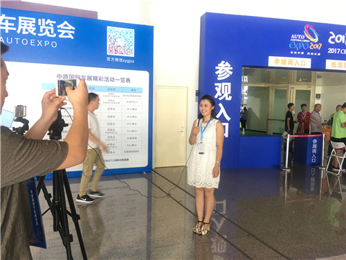 2017第六屆中原國際汽車展覽會開幕首日,映象主播十三妹已經(jīng)達到現(xiàn)場。