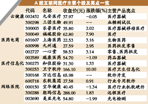 有機構(gòu)人士表示,下一個金礦可能是互聯(lián)網(wǎng)同醫(yī)院、醫(yī)藥、藥房等醫(yī)療領域的聯(lián)姻。記者統(tǒng)計發(fā)現(xiàn),天堂硅谷、紅杉資本、云峰基金、力合創(chuàng)投等一大批私募和PE們都已提前布局互聯(lián)網(wǎng)醫(yī)療。在A股市場上,部分互聯(lián)網(wǎng)醫(yī)療潛力股投資者可適當關(guān)注。