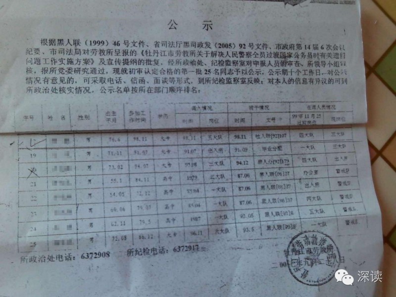 日前,有多名黑龍江省牡丹江市強制戒毒所(原勞教所)在職及退休干警通過爆料平臺向深讀爆料稱,該單位原副所長為了能讓兒子進入勞教所工作,通過虛構(gòu)出生年月的手段造假,使其兒子順利進入勞教所工作,并在入黨后被提拔成為單位的中層干部。