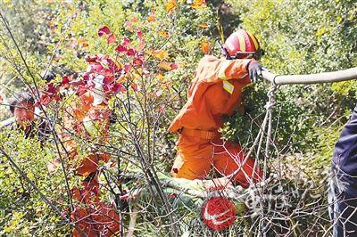 從上午9時開始,當?shù)卮迕衽G斬棘,慢慢護送白靜波遺體下山。消防官兵也從其它地方迂回趕來,歷經(jīng)6小時才將遺體送下山。