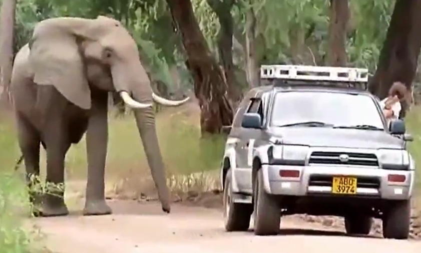 非洲野象頭部中彈子彈嵌入頭骨 淡定攔車求助