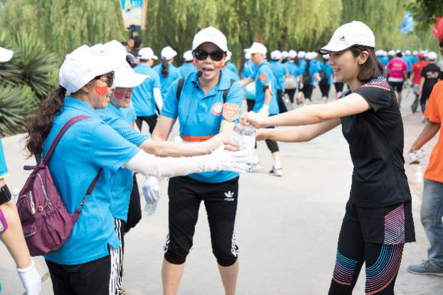 一口涼白開(kāi),活力走起來(lái)。一姐馬曉紅為參賽者送上涼白開(kāi)