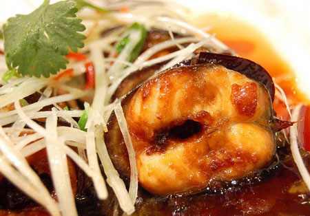 燒魚時有人喜歡把姜與魚一起下鍋,認為這樣可去除魚腥。其實不然,過早放姜會使得魚體浸出蛋白質阻礙生姜的去腥效果??梢韵劝阳~在鍋里煮一會兒,待蛋白質凝固后再放姜;也可在爆鍋時烹入少量醋和料酒,起到去腥解膩增香的作用。如果還是覺著有腥味,出鍋前撒上點蒜末,效果非常好,特別是烹制長時間冰凍的魚。