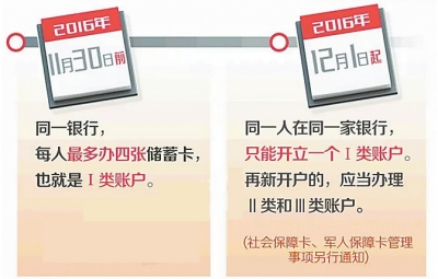 核心提示|央行關(guān)于個人銀行賬戶實行分類管理的新政將于12月1日正式實施。根據(jù)新政要求,個人銀行賬戶將分為Ⅰ類、Ⅱ類、Ⅲ類賬戶,不同類別的賬戶有不同的功能和權(quán)限。個人在銀行開立賬戶,每人在同一家銀行,只能開立一個Ⅰ類戶,如果已經(jīng)有Ⅰ類戶的,再開戶時只能是Ⅱ、Ⅲ類賬戶。央行表示,通過對個人銀行賬戶進行分類管理,規(guī)避金融詐騙風險。
